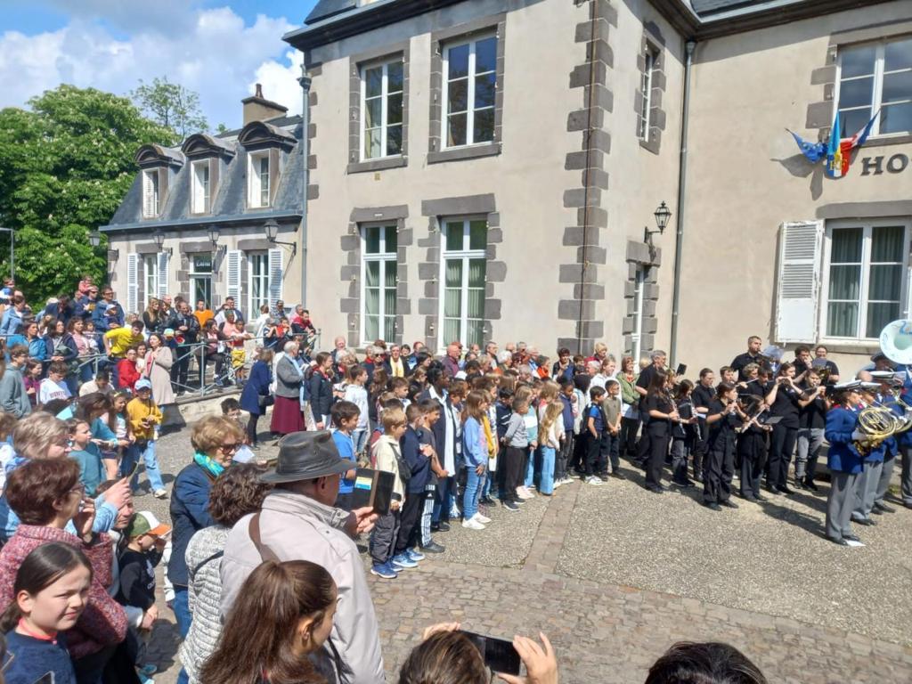 La cérémonie prévue au cimetière et devant le parvis de la Mairie de ROMAGNAT faisait participer les enfants des écoles primaires de la commune ainsi que de la chorale Crescendo.