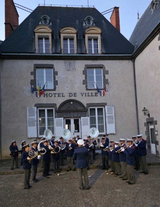 La Batterie-Fanfare de l’Eveil Romagnatois a conduit le défilé jusqu’au cimetière pour les cérémonies d’usage, allocutions et dépôt de gerbe, Marseillaise, avant de revenir sur le parvis de la Mairie pour quelques morceaux supplémentaires.